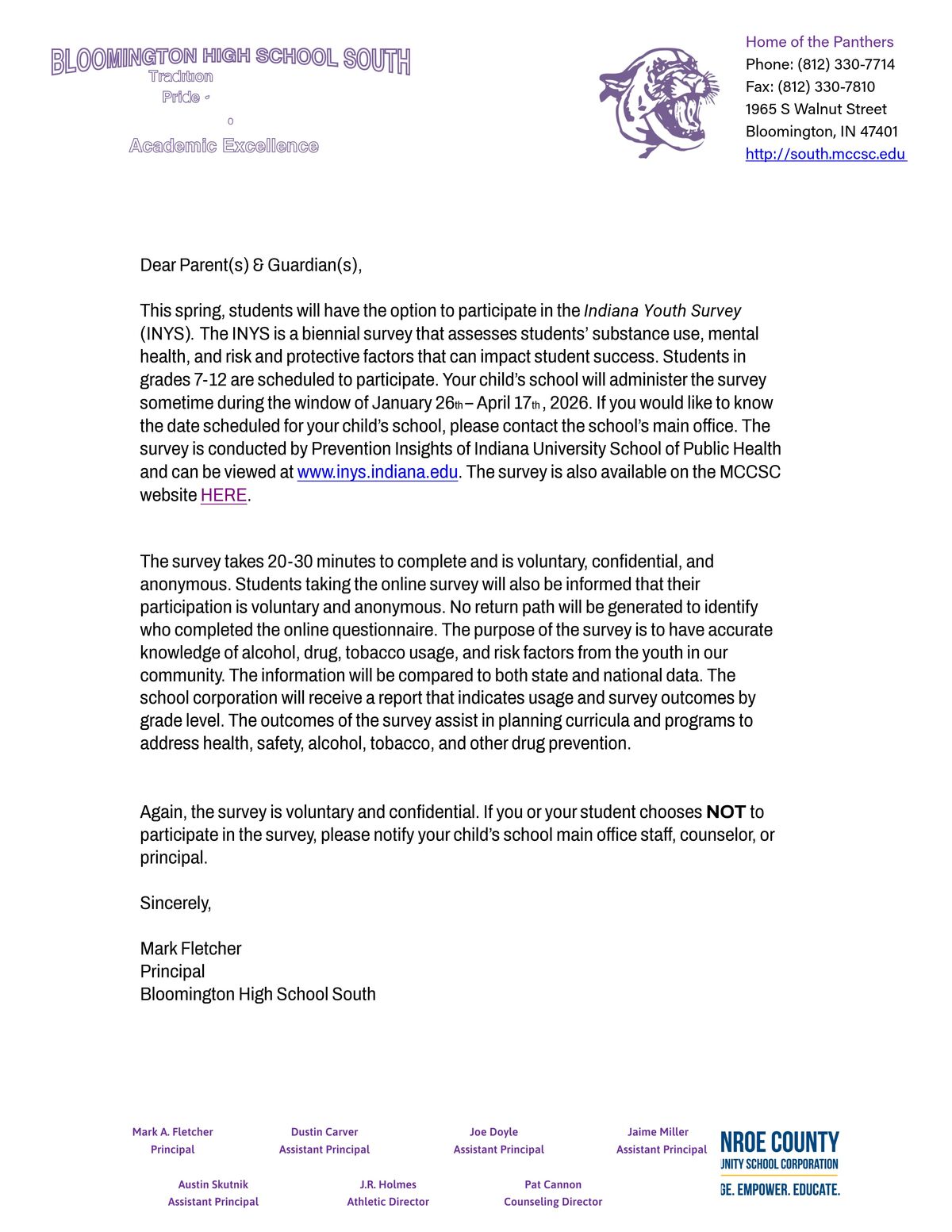 We look forward to meeting you, and encourage you to always: Have pride in yourself, and the Panthers!