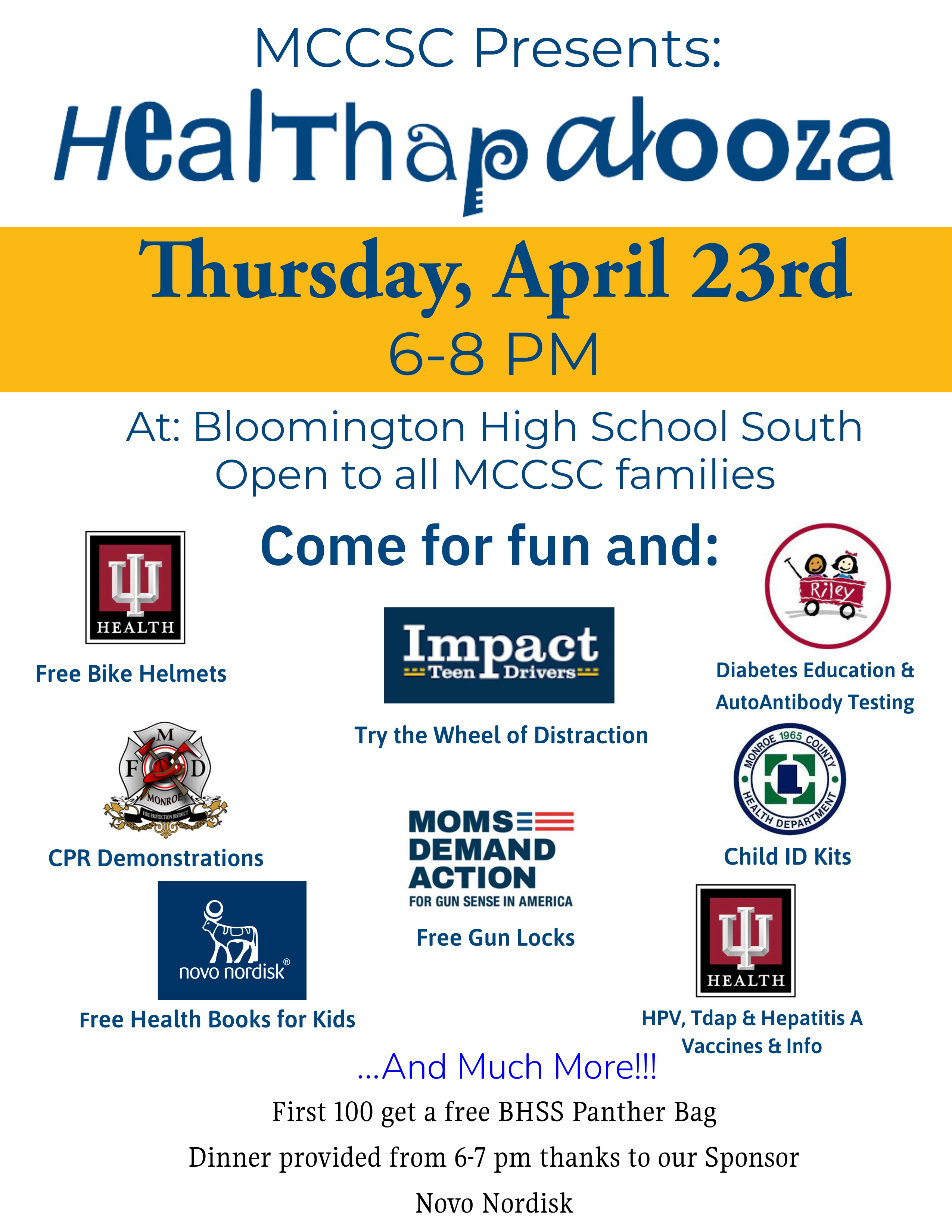 Healthapalooza is coming up on April 23rd from 6–8 PM at Bloomington High School South! Enjoy a free meal from 6–7 PM, then explore a wide range of exhibitors offering health and literacy resources...