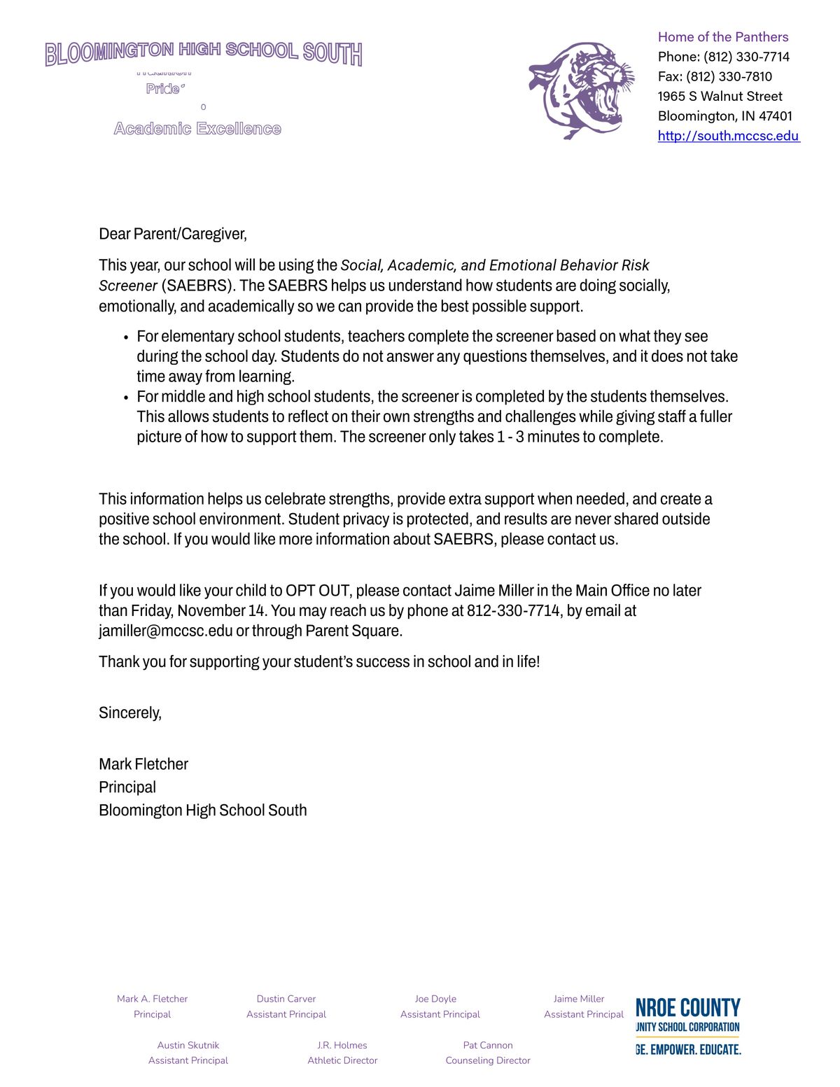 We look forward to meeting you, and encourage you to always: Have pride in yourself, and the Panthers!
